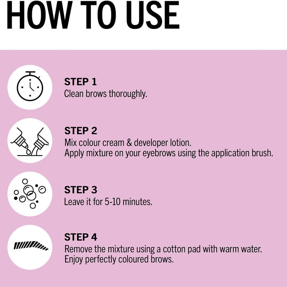 Prepare the brow area, apply the product using feathering or shading techniques to fill in sparse areas, and set the color for long-lasting wear. The process is quick and easy, providing grey coverage and up to 10 applications per pack.