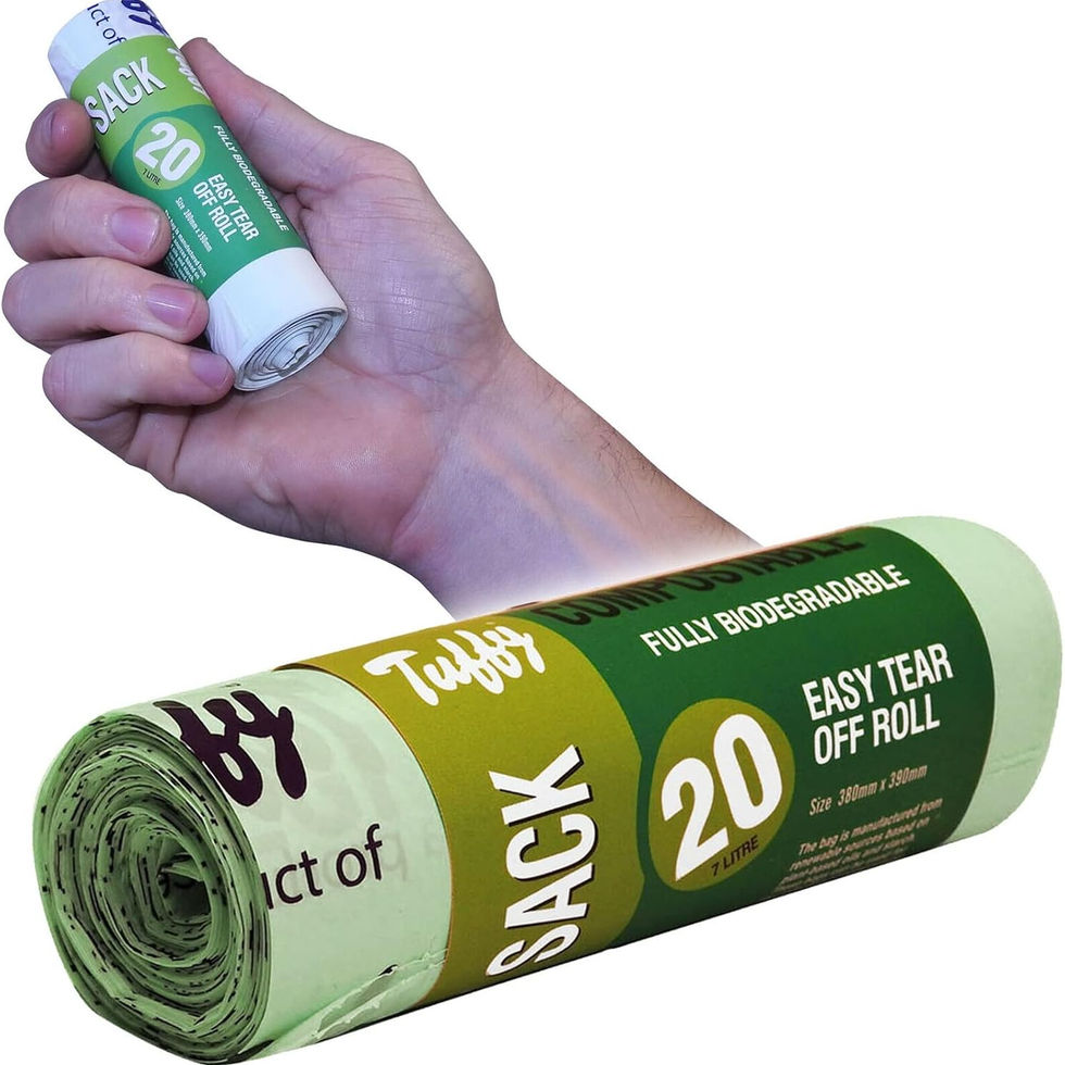 Tuffy Caddy Liner 7L, 20pcs Easy Tear Compostable Biodegradable Food Waste Bags